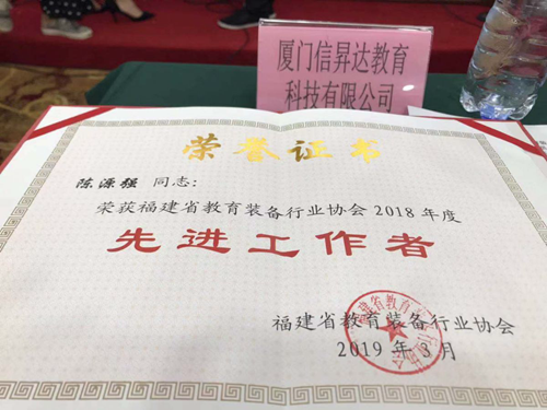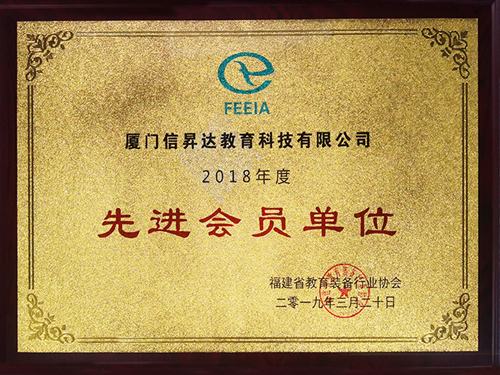 廈門信昇達教育科技有限公司榮膺福建省教育裝備行業協會2018年度先進會員單位。
