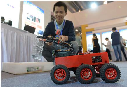 比賽中,機器人需要在鋪有雜物、沙石等復雜模擬惡劣環境的路面上翻山越嶺,通過攝像頭進行遠程控制,完成二維碼識別,紅外圖像處理,人像識別,機械手抓取等一系列任務。面對眾多由國外高中、大學學生組成的隊伍,這支年齡14-15歲隊伍在預賽、決賽中一路高歌猛進,團隊所設計操控的機器人,在任務完成過程中的精確度、時效性、靈巧性等多個考評層面皆取得高分,最終奪得冠軍。
