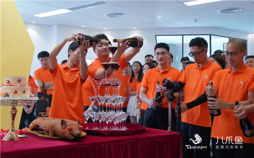 香檳酒一開,好事自然來。最后,各位領導共同開啟香檳酒,開啟喬遷的喜悅;舉杯歡慶盛典,送上對八爪魚教育美好未來的無限祝福。