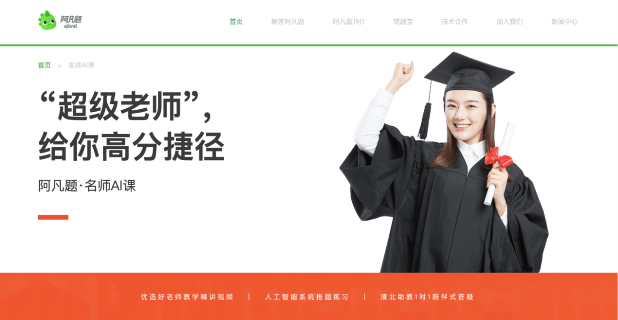 阿凡題是國內第一家將“AI老師”應用在K12中高考領域的教育機構,超級名師打造高水平、高質量的授課,AI為學生打造獨一無二個性化的學習方案。阿凡題名師AI課堂是阿凡題重磅推出的旨在解決家長和學生教育資源短缺和學習時間緊缺的產品,以考點和對應題型為最小單元安排學習,集合“優質教師+人工智能“打造“超級名師”,精心打造水平診斷、學習路徑規劃、優質教師授課、精準推題、班主任跟蹤、課后答疑六大環節,幫助學生更高效的學習,讓學生能夠沿著最適合自己的學習路徑,查漏補缺,夯實基礎,有效提升學習效果。