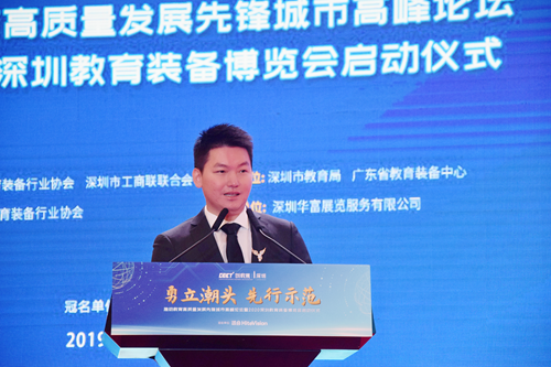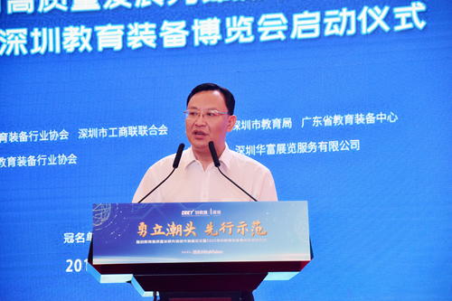 2019年9月19日,由深圳市教育裝備行業協會主辦的“勇立潮頭 先行示范”——推動教育高質量發展先鋒城市高峰論壇暨2020深圳教育裝備博覽會啟動儀式在深圳五洲賓館順利召開。來自全國各地的省市區縣領導、部門領導、教育專家、學者、商協會會長、企業家以及銀行、券商、投融資機構的代表等近千人歡聚一堂,共襄盛舉。