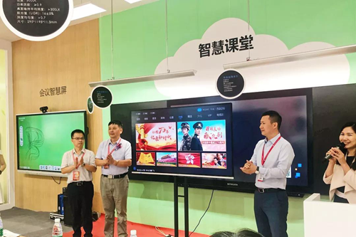 作為深耕教育行業發展的創維光電,本次攜智慧教育一體機、親子智慧屏、會議智慧屏、智慧黑板、智慧班牌等產品亮相現場。