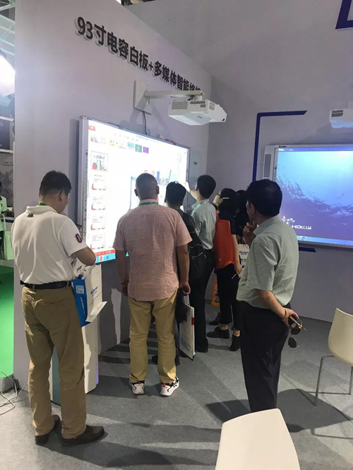 針對不同的教學需求,東方中原也有不同的解決方案,此次展出98寸單側配搪瓷綠板紅外線一體機方案、93寸電容白板+多媒體智能終端方案和86寸電容一體機+互聯綠板方案,既能滿足傳統教學需求也能進行多媒體教學。