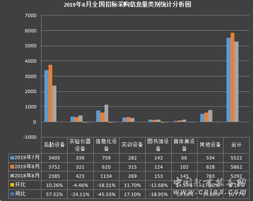 8月份國內教育裝備市場招標采購信息量持續增長 后勤設備占比高
