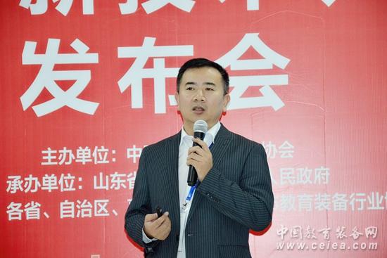 中國(guó)教育裝備行業(yè)協(xié)會(huì)駐會(huì)副會(huì)長(zhǎng)李興植主持發(fā)布會(huì)