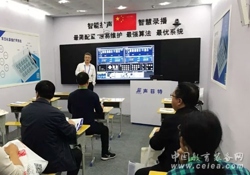 本屆展會,聲菲特推出了雙師課堂互動體驗區,主要展示智慧教學擴聲和精品錄播系統,采用陣列麥遠程拾音、音頻處理器特殊反饋算法處理后、通過音柱控制覆蓋把聲音傳送出來,再搭配攝像頭和錄播主機,可無縫對接遠程音視頻互動教學,系統操作簡單,真正地解放老師的手腳,讓老師只專注于教學內容,使課堂互動更活躍,效果更好。