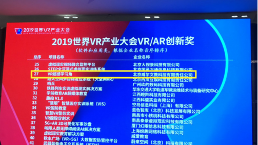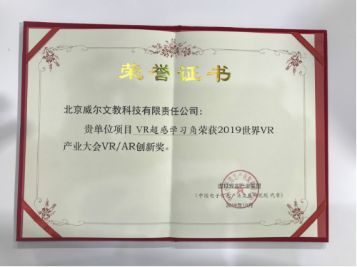“VR讓世界更精彩——VR+5G 開啟感知新時代”—2019世界VR產業大會在江西南昌拉開帷幕。國務院副總理劉鶴及江西省相關領導人出席大會。威爾文教攜VR超感系列方案及產品精彩亮相,并獲得2019 VR/AR年度創新獎。