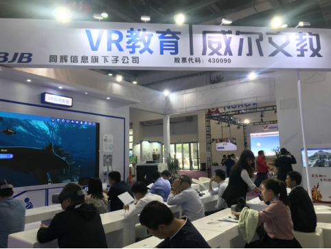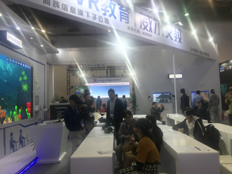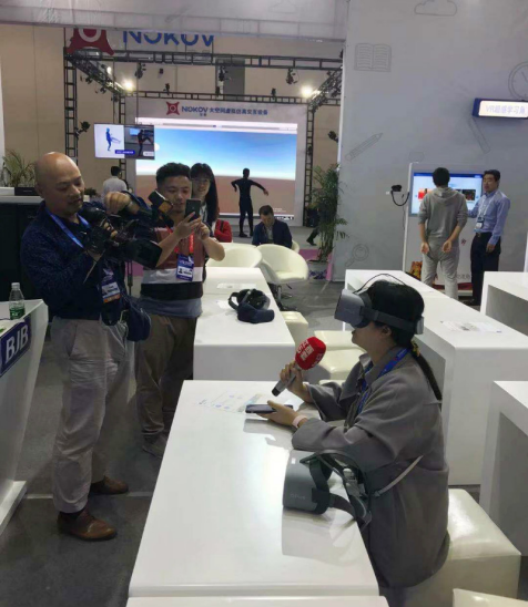 在此次展會上,威爾文教打造的VR超感教室以其生動形象、自然交互的特點吸引了眾多與會者參與體驗,通過講師的引導式講解,讓與會者能夠沉浸其中,遨游知識的海洋。更有江西5套記者現場體驗采訪。