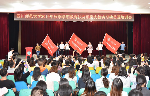 各高校采取多樣形式組織涼山頂崗實習支教出征儀式:四川師范大學向頂崗支教團授旗,致敬慰問學生并鼓勵他們立志為校爭光;西華師范大學在誓師大會上授旗宣誓,勉勵支教團團員為鄉村教育、鄉村振興貢獻青春力量;綿陽師范學院要求同學們主動擔當使命全心全意做好支教工作;內江師范學院祝愿同學們在深貧縣度過一段非凡、難忘、特殊的人生經歷;成都師范學院鼓勵學子打贏教育精準扶貧重要戰斗;西昌學院希望同學們做好思想準備,克服各種困難,堅定信心面對一切考驗;阿壩師范學院要求學子全力以赴完成光榮使命用青春捍衛民族團結和民族進步的光輝旗幟;四川文理學院向選拔學子表示熱烈祝賀;宜賓學院組織支教團隊莊嚴宣誓,為人師表追尋詩與遠方;四川音樂學院為支教同學“送行”、“點贊”;成都體育學院向扶貧支教團隊授旗鼓勵他們牢記責任使命展示成體風采;四川民族學院希望學生飽滿熱情投入支教工作言傳身教展示民院精神風貌;四川職業技術學院要求學子多看、多思、用心、用情。
