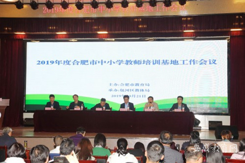原小學語文教師培訓基地學校-合肥市師范附屬小學,初中生物教師培訓基地學校-合肥市琥珀中學作經驗,介紹了多年來的工作舉措、工作創新和工作成效。紅星路小學代表新建基地作表態發言。合肥市教育局公布了新一期20個學科培訓基地名單,舉行了授牌儀式,并從培訓任務、培訓方式、培訓管理、工作創新等4個方面對培訓基地工作進行了部署。根據安排,新一輪教師培訓基地工作周期為3年,采取“5+7+N”的混合制培訓模式,將承擔起組織實施3類培訓、開發培訓資源、開展培訓專題研究、資源庫建設等培訓任務。