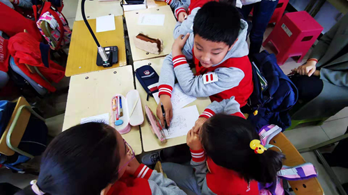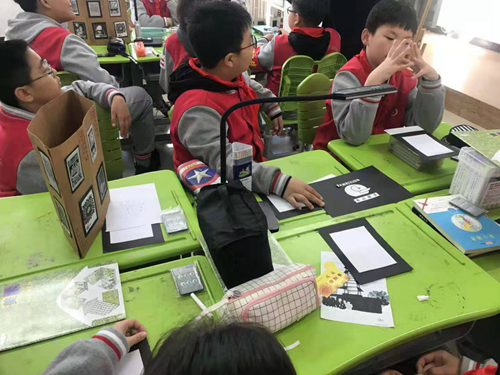 小組之間互相交流討論,每個小朋友發(fā)揮著各自的想象力。美術課再也不是傳統(tǒng)的埋頭創(chuàng)作,而是學生之間創(chuàng)作思路的碰撞、成果的分享。
