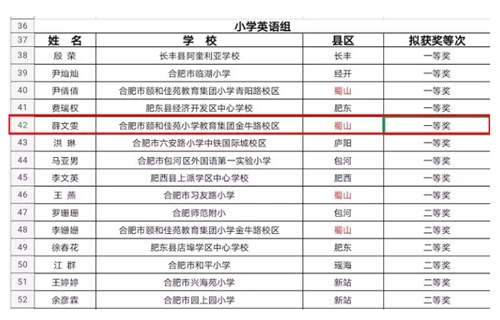 為進一步推進我市信息技術與課堂教學融合創新,優化課堂結構,提升課堂教學實效。11月10日,合肥市教育局裝備電教中心組織開展了“2019年合肥市中小學教師信息技術應用課堂教學展示活動”本次展示活動由蜀山區教體局協辦、合肥市翠庭園小學承辦,薛文雯老師代表頤和佳苑小學金牛路校區進行教學案例展示并獲得一等獎。