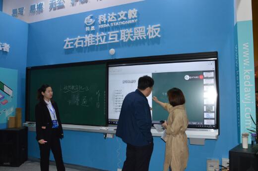展會現場科達文教工作人員生動地演示了老師如何在課堂上與學生進行實時互動,如何實現同屏顯示、一鍵保存、互動直播、存儲查詢等科達互聯黑板的強大又實用的功能。來自四川和全國各地的客戶親身體驗過后,紛紛對科達互聯黑板贊不絕口。