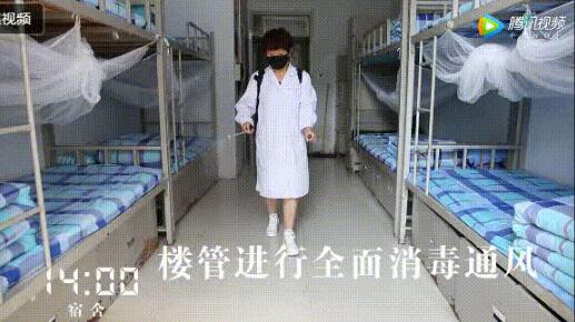 13點,學生午休。14點,宿舍消毒準備,學生們在廣播提醒聲中起床、迅速前往教室。