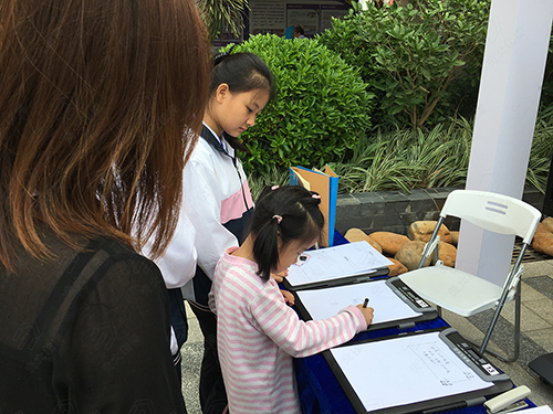 光大教育已在順德的匯賢中學、君蘭中學、翁祐中學、杏聯(lián)中學、潘祥中學等多所學校搭建紙筆互動課堂,并逐步實現(xiàn)常態(tài)化應用。為了讓參與的師生都能親身體驗紙筆互動課堂的魅力,光大教育在北滘?qū)W校的教室中搭建創(chuàng)新體驗中心,將紙筆互動課堂“搬”到創(chuàng)客節(jié)活動,再現(xiàn)真實的紙筆互動課堂上課場景。