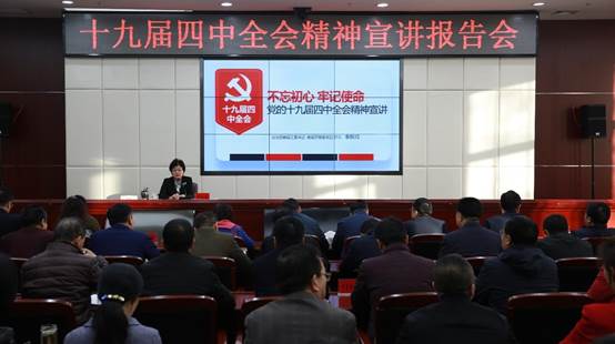 宣講報告中,李秋玲從“深刻領會黨的十九屆四中全會精神、切實把思想和行動統一到黨中央決策部署上來,深刻領會中國特色社會主義制度和國家治理體系的顯著優勢、堅定中國特色社會主義制度自信,準確把握《決定》提出的重點任務、扎實推進教育治理體系和治理能力現代化, 著力打造一流干部隊伍、切實為全面落實全會確定的各項目標任務提供堅實保障”四個方面,深刻闡釋了黨的十九屆四中全會的重大意義,全面闡釋了中國特色社會主義制度和國家治理體系的顯著優勢,系統解讀了全會《決定》提出的總體要求、總體目標和重點任務,明確提出了加強黨的領導、把全會確定的各項目標落實到位的具體措施。