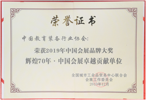 中國教育裝備行業協會榮獲2019年中國會展品牌大獎——輝煌70年·中國會展卓越貢獻單位