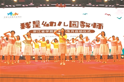 學前教育宣傳月上,杭州的教師代表在宣誓。 蔡寅霽 攝(資料圖片)