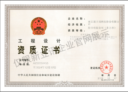新立訊喜獲建筑智能化系統(tǒng)設計專項乙級資質