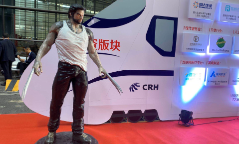 年會中有一處拍照區(qū)放著用極光爾沃3D打印機打印的金剛狼,該造型身高有1.85cm,體重約65公斤,身材比例幾乎按照原形打印。后期經(jīng)過設(shè)計師上色,整體看上去,威武而有氣勢。大家紛紛上前同金剛狼合影留念。