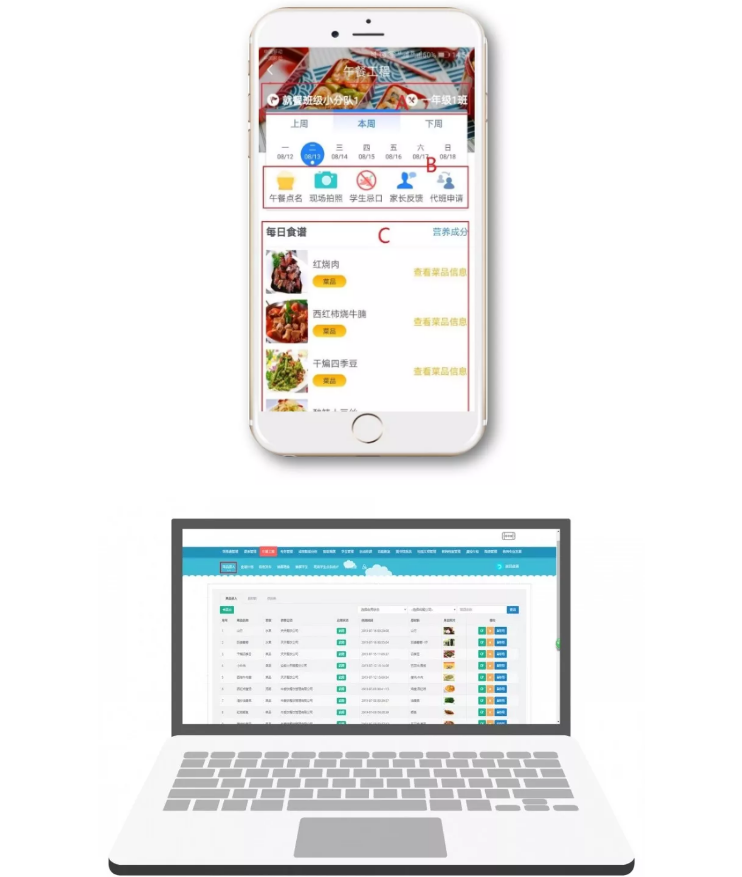 供應商入駐平臺,我們從源頭上把關,學校根據孩子的年齡特點和生長需求制定每日菜譜,確保學生用餐的安全、衛生。