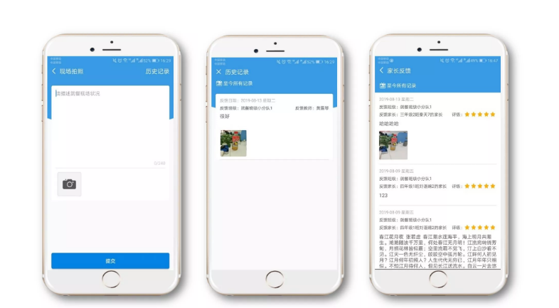 另外,對學校管理來說,通過科技的力量,結合學校午餐服務工程在疫情期間的監督管理辦法,可以更好的協助學校完成特殊時期的學生就餐時的疫情防控工作。不管是教室現場的環境、餐盤的消毒,還是現場人員口罩佩戴情況,就餐時的學生秩序情況等,陪餐家長、陪餐老師、值班老師都可以在現場時刻監督,所有反饋照片及數據統一匯總到校平臺,學校領導可以隨時了解本校“午餐服務工程”的疫情防控工作,做到讓學校放心。