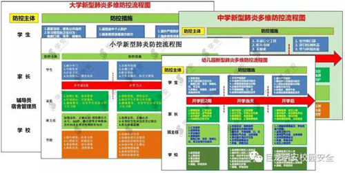 2020年1月27日,河南省教育廳印發新型冠狀病毒感染的肺炎疫情防控Ⅰ級應急響應工作預案。隨后,河南省教育廳新型冠狀病毒感染的肺炎疫情防控工作領導小組關于印發《河南省學校新型冠狀病毒感染的肺炎疫情防控工作指南及流程圖》的通知,明確規定針對幼兒園、小學、中學(中職學校)及高等學校的疫情防控指南及流程圖。