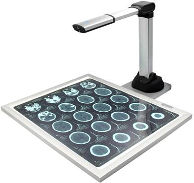 設備硬件部分由1500萬像素高清晰高拍儀和LED醫用觀片燈箱兩部分組成,能高效地采集X光片、CT片、MRI核磁片等膠片的高清影像,讓傳統的醫學膠片瞬間轉化成高清數字化影像并上傳到電腦系統。