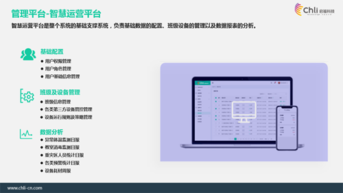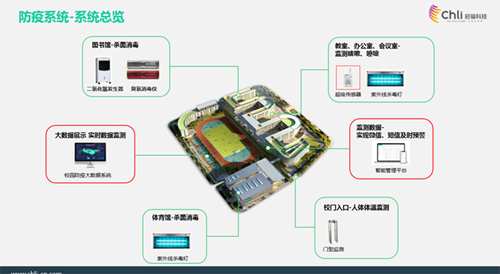 通過體溫監測、環境監測和消毒處理設備對校園內教室、校門出入口、圖書館等位置的全方位布局,并由防疫系統云平臺統一監控和預警,全面排除安全隱患,助力保障師生健康。