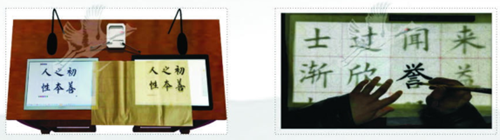 數字臨摹臺,獨有專利設計,利用特殊成像技術,將書法字清晰地投射到宣紙上。