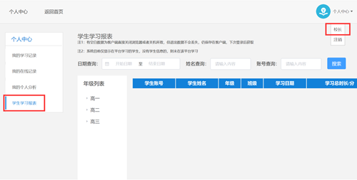 校長和老師們現在進入我們資源平臺,可以同步看到學生們各自的在線學習情況啦!每位學生都逃不過我們平臺的數據統計,哈哈!