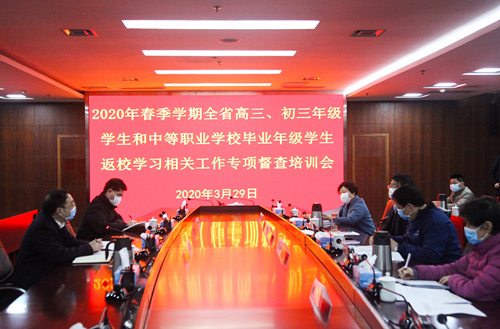 3月29日,省委教育工委、省教育廳召開2020年春季學期全省高三、初三年級學生和中職學校畢業年級學生返校學習相關工作專項督查培訓會,對返校學習相關工作專項督導進行部署,省委教育工委書記、省教育廳廳長葉仁蓀出席并講話。