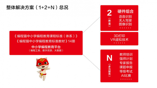為積極響應國家《新一代人工智能規劃》《教育信息化和網絡安全工作要點》《教育信息化 2.0 行動計劃》等政策部署,深化普及青少兒編程教育,進一步完善課程方案和課程標準,編程貓于3月30日正式發布“1+2+N”公立教育整體解決方案,協助公立學校全面開展編程教育,共同推進編程課程開發與實踐,為建設人工智能與編程教育示范區提供基礎。