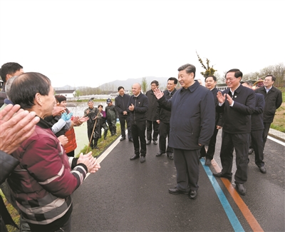 3月30日,習近平前往湖州市安吉縣天荒坪鎮余村村考察調研。2005年8月15日,時任浙江省委書記習近平在該村考察時首次提出“綠水青山就是金山銀山”。15年來,余村堅定踐行這一理念,走出了一條生態美、產業興、百姓富的可持續發展之路,美麗鄉村建設在余村變成了現實。在村黨群服務中心,習近平詳細了解余村發展情況,對他們發展綠色經濟、帶動村民增收致富的做法給予肯定。