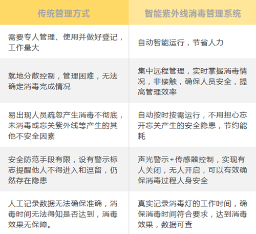 二、智能紫外線消毒管理監控系統:紫外線消毒燈以系統化連接,運用物聯網、大數據及云計算等先進技術,對紫外線消毒進行安全防范控制,量化精準管理,對操作人員、監管流程、設備等進行信息數據化管理,確保消毒的有效性和安全性。