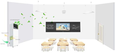 綜合1、 2, 取較大值,故初中教室新風(fēng)量不小于1400m3/h�?紤]學(xué)生可能超過50人,同時(shí)考慮管道漏風(fēng)等因素,宜選兩臺(tái)800m3/h的柜機(jī)或吊頂新風(fēng)機(jī),應(yīng)有溫度、濕度,二氧化碳、甲醛、PM2.5、TVOC數(shù)值顯示,以實(shí)現(xiàn)對(duì)教室內(nèi)的空氣進(jìn)行實(shí)時(shí)監(jiān)測,新風(fēng)機(jī)應(yīng)為正式新風(fēng)機(jī),當(dāng)為雙向流新風(fēng)機(jī)時(shí),排風(fēng)量為新風(fēng)量的0.8倍,以保證教室為正壓。
