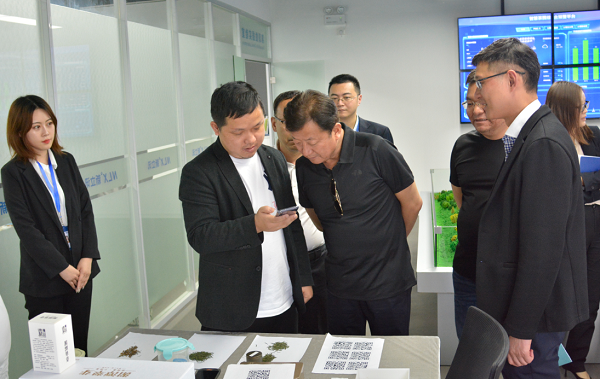 黃國俊主任一行在新立訊高管層的陪同下,參觀了新立訊總部各職能中心、黨建活動室、研發中心、龜兔賽跑軟件研究院、農村權益交易工程研究中心以及江蘇省鑒真溯源數據實驗室和大數據分析實驗室等,認真聽取了新立訊工作人員對鑒真溯源技術在茶葉、大米、牛羊肉、煙草等商用環節的講解和演示,并現場互動參與。