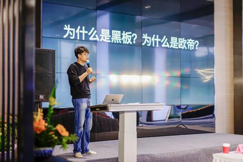接下來就到了本次發(fā)布會的重點(diǎn)環(huán)節(jié)——新品發(fā)布。歐帝科技市場運(yùn)營中心總監(jiān)張青為大家現(xiàn)場揭曉歐帝新品:四代黑板、二代紅外一體機(jī)、智能講臺、6mm極窄雙屏、自研拼接屏等,并從用戶的角度分析歐帝新品如何提升教學(xué)體驗。