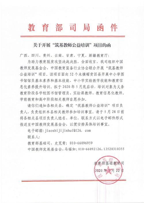 中國教師發展基金會 中國教育裝備行業協會關于開展“筑基教師公益培訓”項目的通知