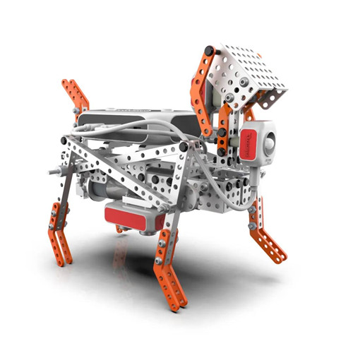 《仿生機械犬》因此而生。本課程引導學生了解狗狗的行走特點以及行為特征,設計并搭建一款能像寵物狗一樣的仿生機械犬。通過編程實現仿生機械犬的行走、搖尾、追人等功能。