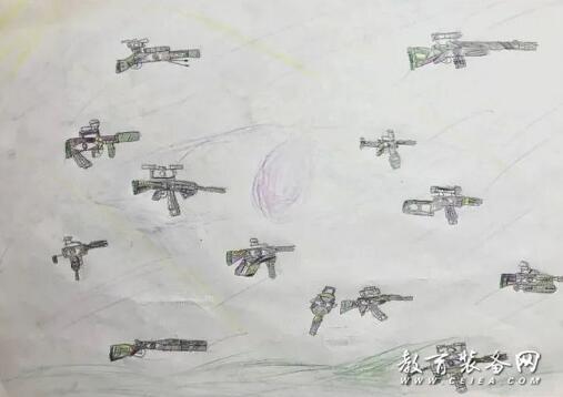 每一個男孩子心中都有一個軍人夢,許多孩子卻因為近視無法選擇參軍,一把把帶著眼睛輪廓的槍,寄托著孩子想?yún)④姷膲粝搿?