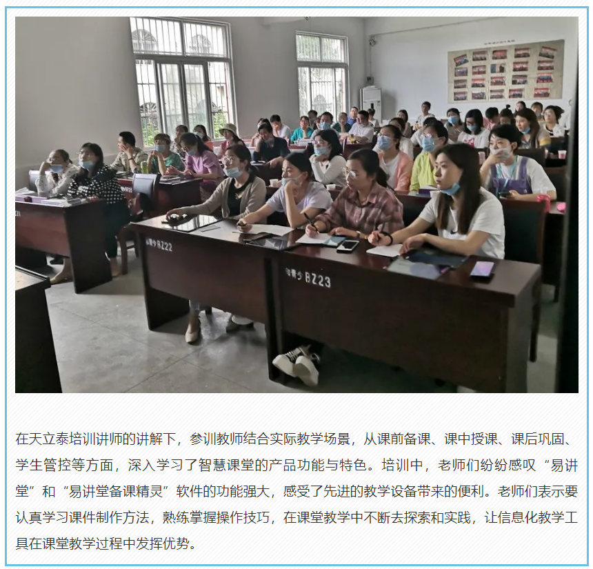 “天立泰智慧課堂功能實用、易用,講師培訓內容深入淺出,對于年齡偏大的教師來說,還有課例的演示更容易理解如何將信息技術融合到實際課程中,受益匪淺。”培訓過后,有不少老師說道。