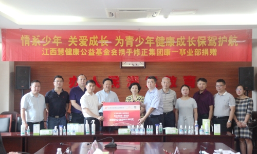 6月15日下午,“青少年健康成長關愛行動”公益項目啟動儀式暨防疫物資捐贈儀式在江西教育發展大廈舉行。江西慧健康公益基金會、修正集團康一事業部共同向省教育廳捐贈一批價值883萬元的免洗手凝膠、免洗手消毒噴霧、紅外額溫槍、兒童3D口罩及酒精消毒液等防疫物資。省教育廳副廳長劉菊嬌致辭,省衛生健康委原副主任、江西慧健康公益基金會創始人程關華出席。