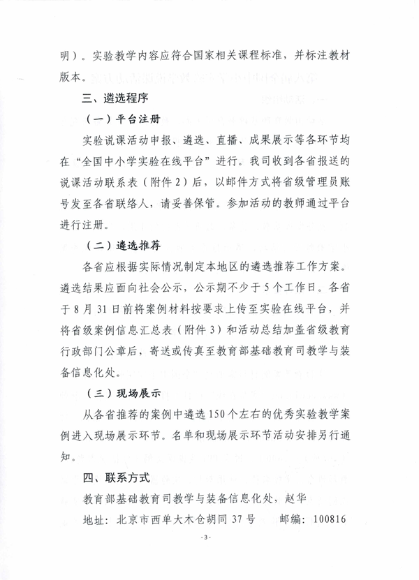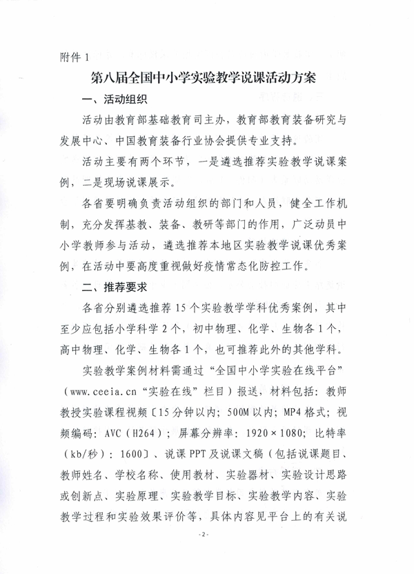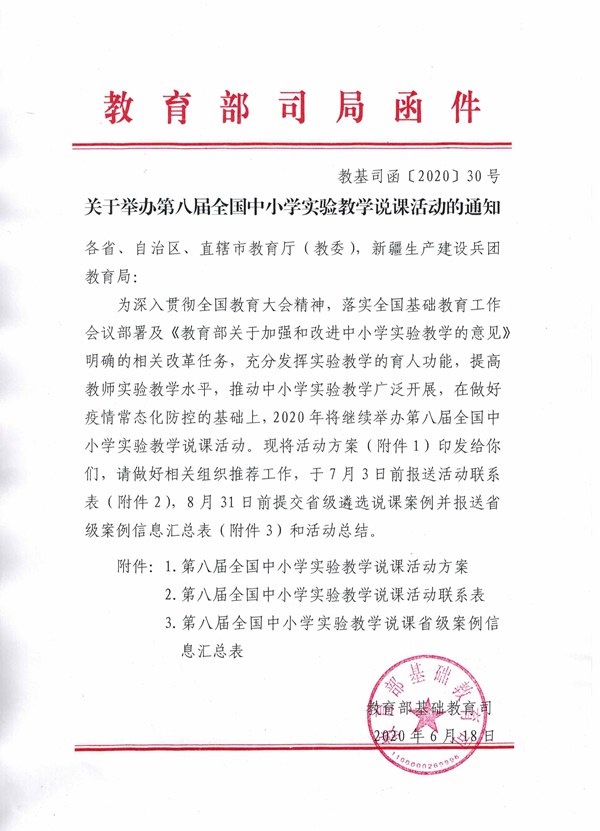 教育部基礎(chǔ)教育司關(guān)于舉辦第八屆全國中小學(xué)實(shí)驗(yàn)教學(xué)說課活動(dòng)的通知