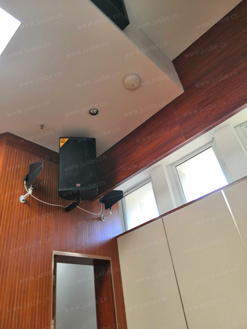 會議室四角各設計1只會議專用揚聲器作為全場擴聲音箱,通過合理安裝、細致調整,使其發揮出最佳擴聲效果。加上音箱優秀語音還原能力,為與會者提供一個清晰自然的語言環境。