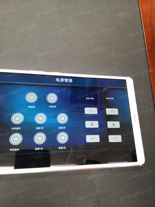 設計的中控系統,會議管理者只需直接控制平板界面,一鍵操作,即可對報告廳內各設備進行靈活掌控(如幕布升降、電源時序器開關),方便快捷,效率高。