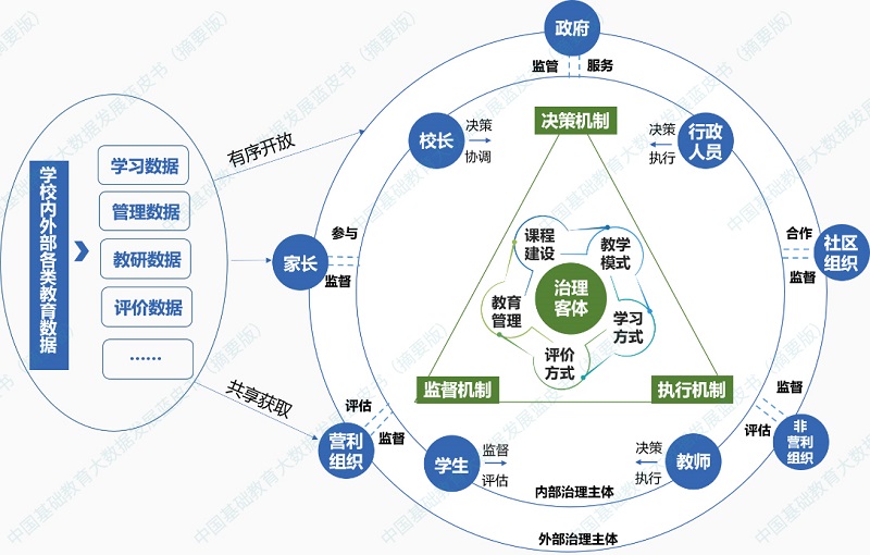 三是治理體系缺失,融合應用困難。教育數據來源多、體量大、結構與關系復雜,需要有一個完整的治理體系來進行管理。但目前這一體系還不健全,導致數據應用深度不夠,應用領域相對較窄,數據潛力得不到充分釋放。
