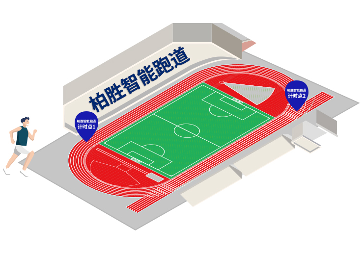 區別于常規立柱感應器與跑道沿邊電子顯示屏,柏勝智能跑道感應系統鋪設不需要在跑道外部安裝其他設備,完全實現無感,真正保障學生運動安全。
