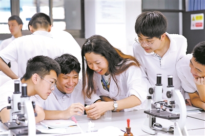 深圳著力將一流科創(chuàng)資源變?yōu)橐涣饔速Y源,用創(chuàng)新教育培育更多點(diǎn)亮特區(qū)未來的明日之星。圖為深圳福田區(qū)中學(xué)生在教師指導(dǎo)下做探究性實(shí)驗(yàn)。(資料圖片)