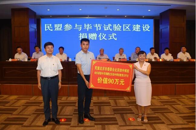 8月27日、28日,民盟北京市委聯合北京四中網校分別向畢節長春堡中學、廣宗葫蘆中學捐贈教育云平臺,為當地脫貧攻堅貢獻智慧和力量。北京四中網校校長黃向偉出席捐贈儀式,分別為兩所學校授牌。